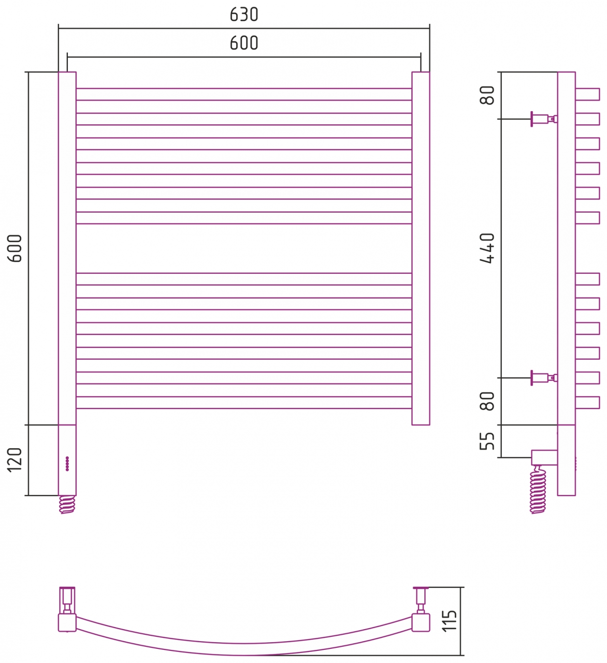 Полотенцесушитель электрический Сунержа Центурион 2.0 600x400