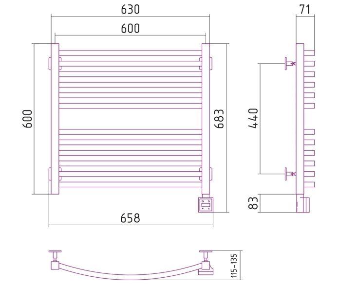 Полотенцесушитель электрический Сунержа Аркус 600x600