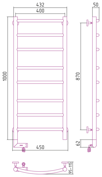 Полотенцесушитель электрический Сунержа Галант 2.0 1000x400