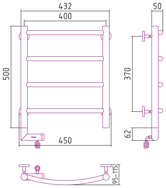 Полотенцесушитель электрический Сунержа Галант 2.0 500x400